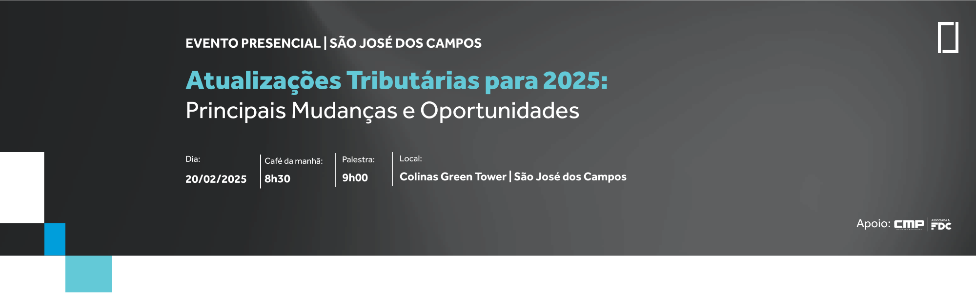 No dia 20/02 (quinta-feira) às 08h30 , realizaremos o evento “Atualizações Tributárias para 2025: Principais Mudanças e Oportunidades”.