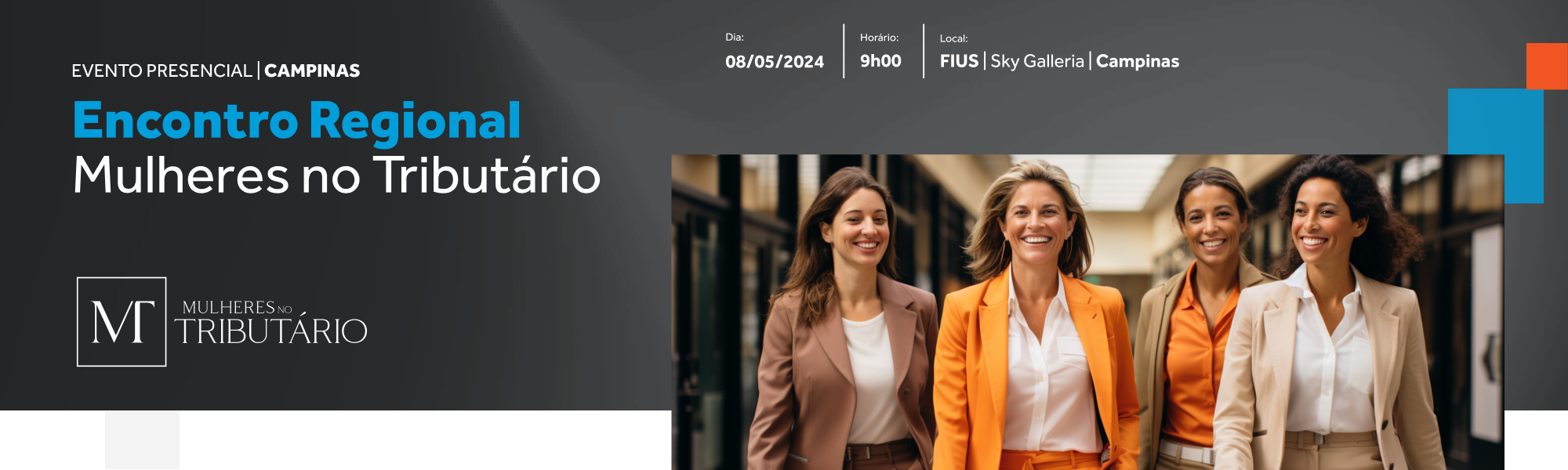 No dia 08/05 (quarta-feira) às 09h00, acontecerá em Campinas o evento “Mulheres no Tributário”.