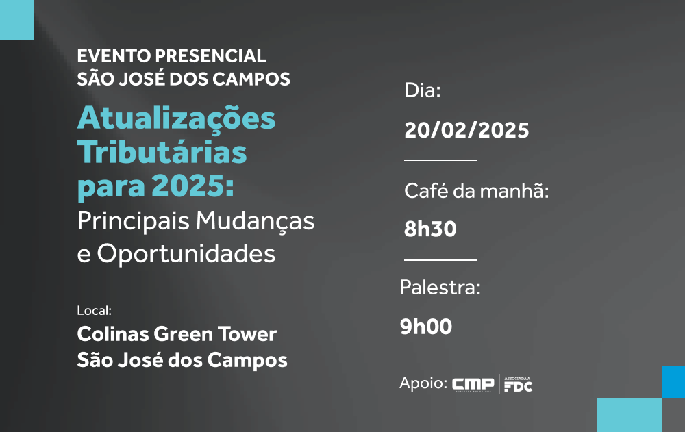 No dia 13/03 (quinta-feira) às 08h30, realizaremos o evento “Reforma Tributária e os Setores Imobiliário e da Construção Civil”, que contará com a participação de Daniel Pazinatto – sócio