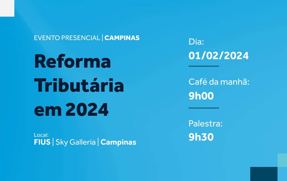 No dia 15/09 (sexta-feira) às 08h30, realizaremos o evento presencial em Campinas “Reforma Tributária (PEC 45/19) – Quais mudanças esperar?”, com a participação de Luiz Carlos