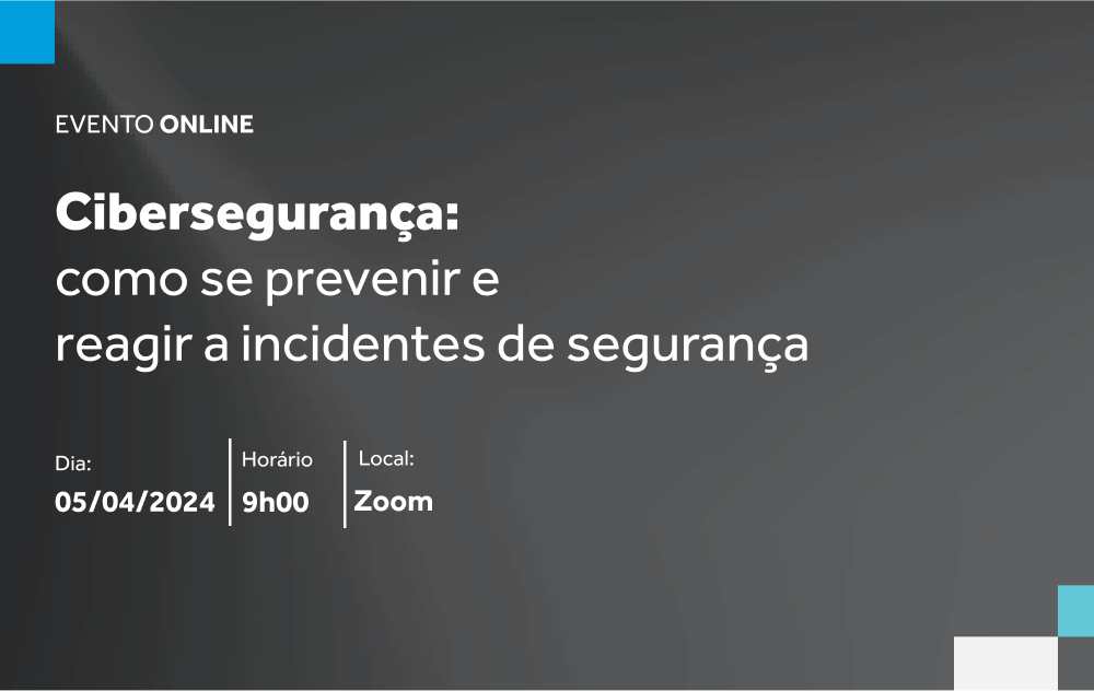 No dia 05/04 (sexta-feira), às 9h00, acontecerá o evento online “Cibersegurança: como se prevenir e reagir a incidentes de segurança”, com a participação de Álvaro Fussi –