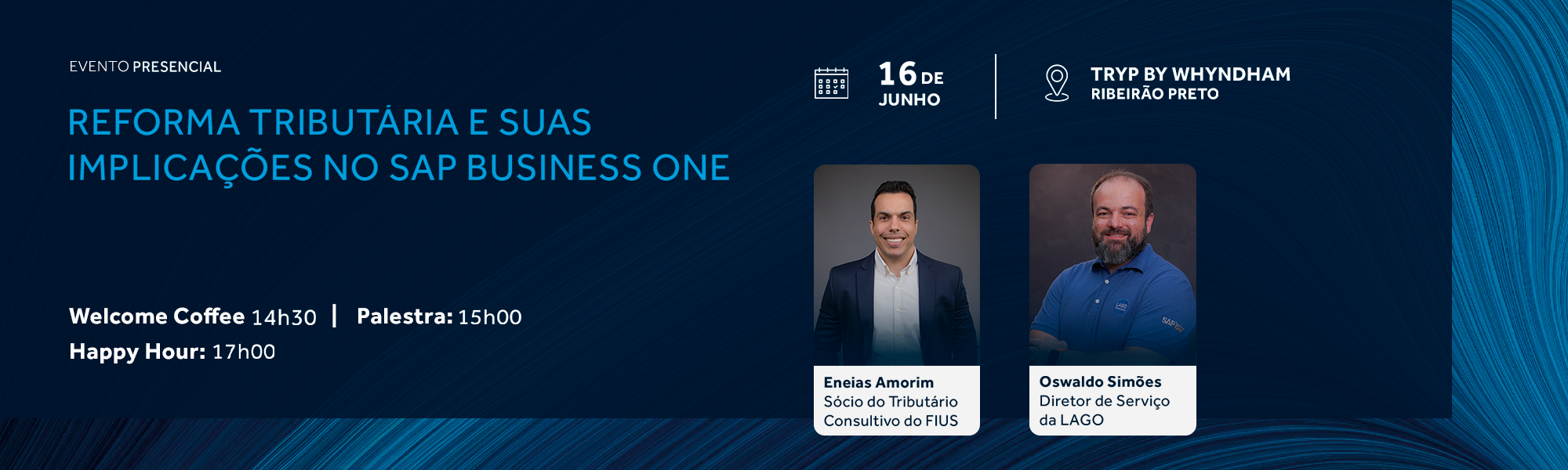 No dia 16/06 (segunda-feira) às 14h30, realizaremos o evento “Reforma Tributária e suas implicações no SAP Business One”, com a participação de Eneias Amorim – Sócio e Milton Schivitaro – Head, ambos do nosso Tributário consultivo e Oswaldo Simões – Diretor de Serviço da Lago Consultoria.