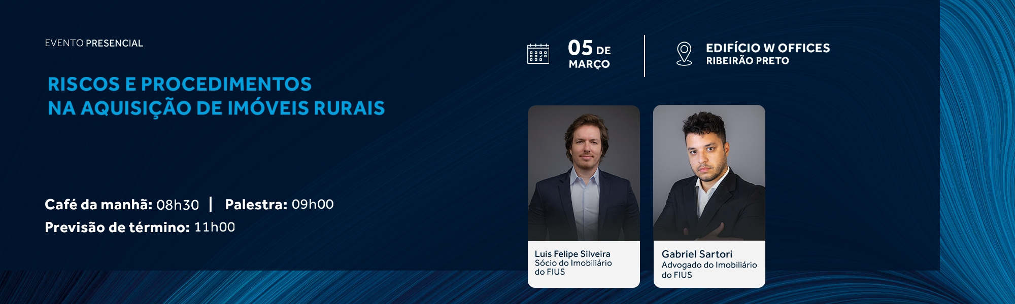No dia 05/03 (quinta-feira), às 08h30, realizaremos em Ribeirão Preto o evento “Riscos e Procedimentos na Aquisição de Imóveis Rurais”.