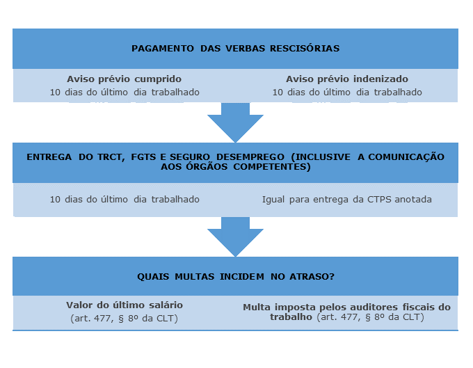 Esclarecemos que a antiga redação do artigo 477 da CLT dirigia-se apenas ao pagamento, sendo que a penalidade tinha incidência por ocasião do atraso na quitação dos haveres rescisórios. Essa situação, como visto, foi modificada a partir de 11/11/2017 com a vigência da Reforma Trabalhista (Lei nº 13.467/2017) e passou a incluir a comunicação da rescisão aos órgãos competentes e entrega de documentos ao empregado dispensado.
